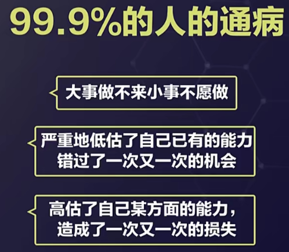 - 99.9%的人都不知道自己真正想要什么,造成思维混乱和效能低下